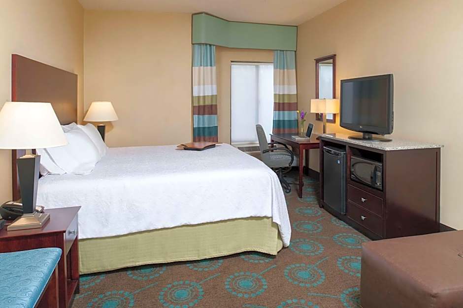 This spacious suite features a small seating area with sofa bed, chair, and ottoman. A microwave and small refrigerator are also included.